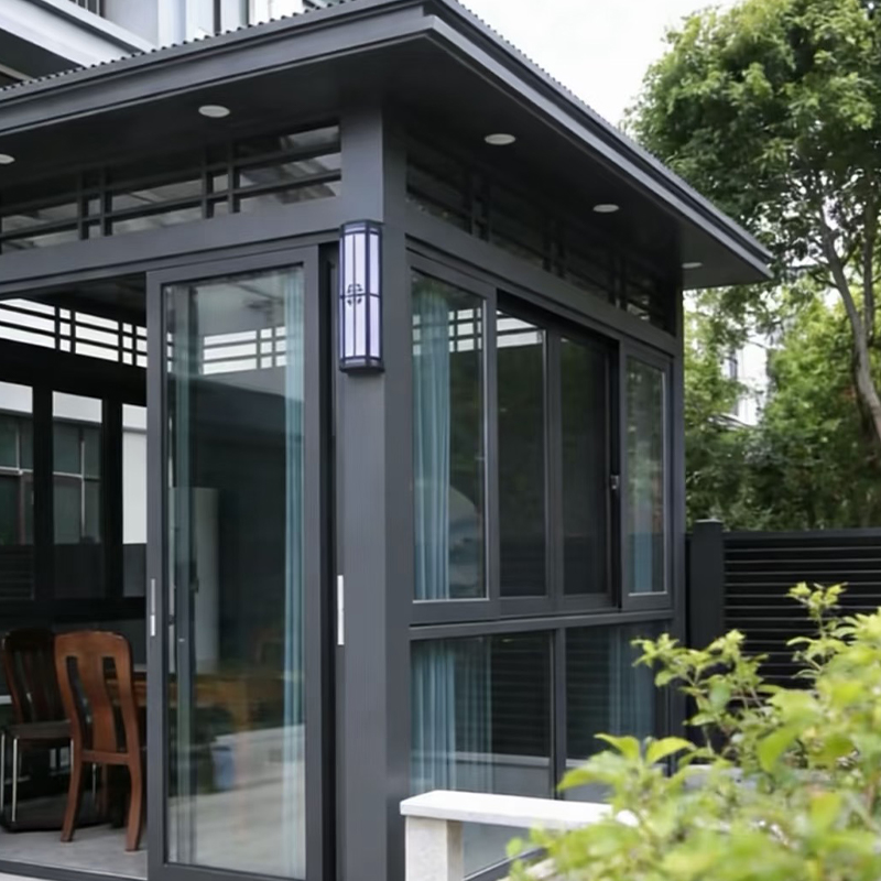يمكن تكوين ألواح الواجهة بنوافذ قابلة للتشغيل مصنوعة من سبائك الألومنيوم لتوفير التهوية الطبيعية إلى جانب وظيفة التظليل عندما يكون الظل في وضع النشر. إن التظليل المحيطي الكامل يجعل غرفة التشمس هذه هي المواصفات الحرارية الأعلى أداءً في مجموعة الفخامة — مناسبة بشكل خاص لتراسات الفيلات المواجهة للجنوب والشرق أو الغرب ومنشآت الفناء في المواقع ذات درجات الحرارة العالية والإشعاع العالي، بالإضافة إلى الفنادق البوتيكية وأماكن الضيافة التجارية التي تبحث عن بيئات خارجية متميزة لتناول الطعام والاسترخاء.