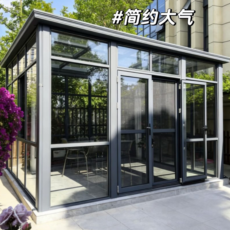 تم تصميم غرفة التشمس في الفناء لتطبيقات المساحات الخارجية الكبيرة، باستخدام إطارات من سبائك الألومنيوم ذات الامتداد الثقيل والتي يمكنها سد عرض الفناء الذي يتجاوز عادةً النطاق العملي لمنتجات غرفة التشمس القياسية. تم تصنيع مقاطع الإطار بدقة وطلائها بالفلوروكربون لمقاومة الطقس الخارجي، وتم تصميم النظام الهيكلي لمجموعة كاملة من هندسة الأسقف أحادية الميل وثنائية الميل والمقوس ومتعدد الأضلاع لتتناسب مع شكل مخطط الفناء والهندسة المعمارية المحيطة.